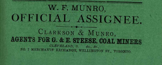 11"Clarkson, Munro and Co.", The Globe, June 18, 1872, p. 1.