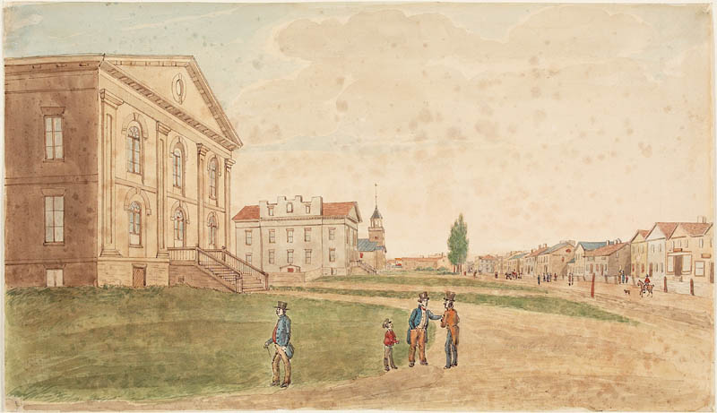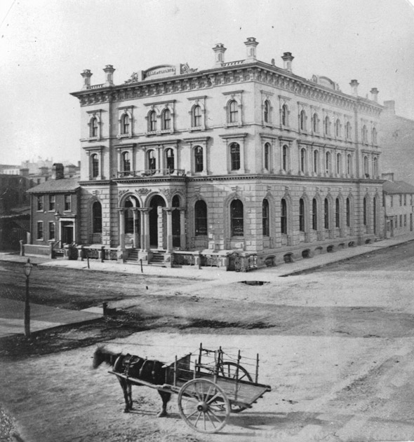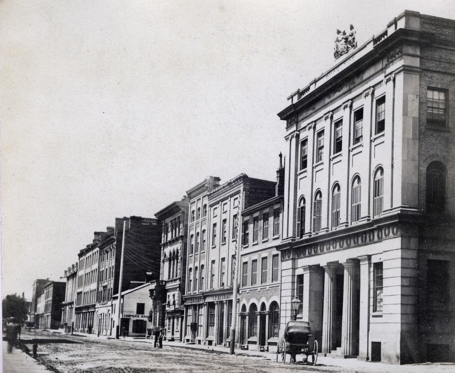 283Wellington St. E., n. side, looking w. from w. of Leader Lane, Octavius Thompson (photographer), 1867, Toronto Public Library, Baldwin Collection, call no. Z 1-18.