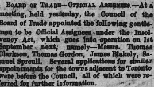 268"Insolvent Act of 1864", The Globe, July 1, 1867, p.4.