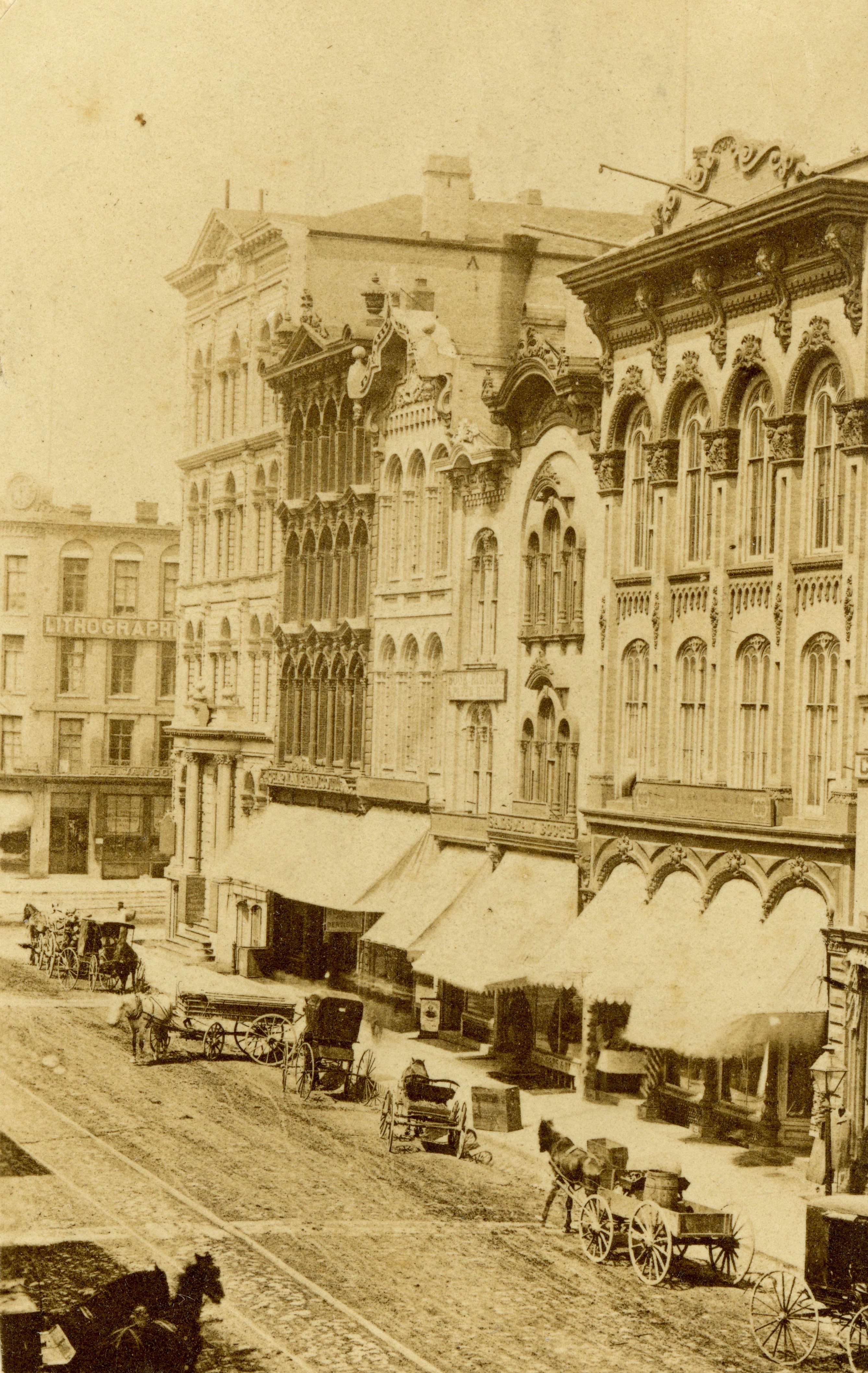 240Water Street 1858, photographer unknown, in Jeff Beutner, "Yesterday's Milwaukee: Water Street 1858", Urban Milwaukee website, www.urbanmilwaukee.com, January 21, 2014, accessed July 16, 2020. Photograph courtesy of Jeff Beutner.